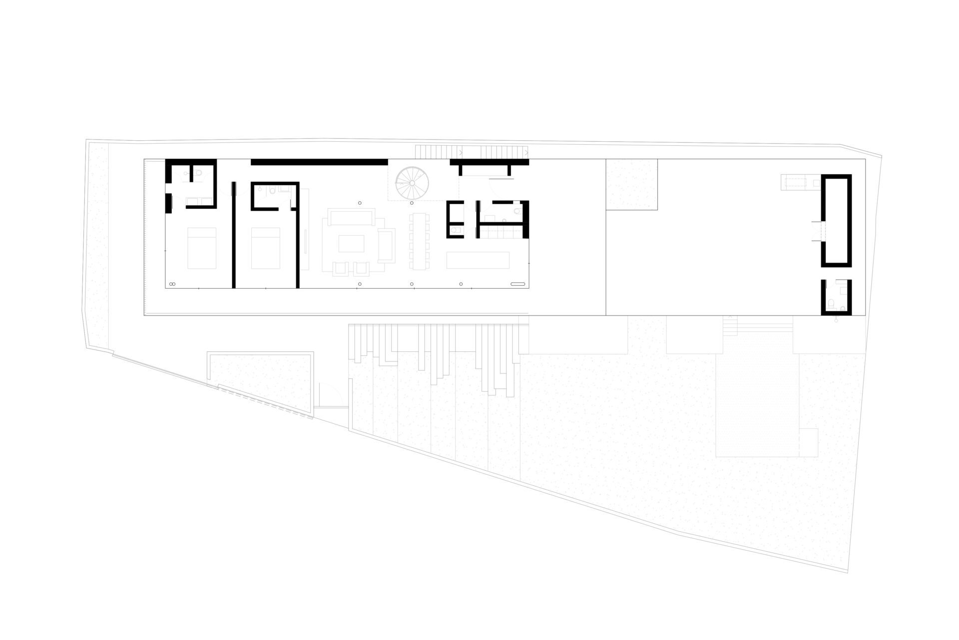 Spanning three levels, the house embodies a harmonious blend of tradition and modernity. Its stone-clad facade pays homage to local craftsmanship while seamlessly integrating with the coastal landscape. However, the small plot size necessitated innovative design solutions, leading to a minimized building footprint.