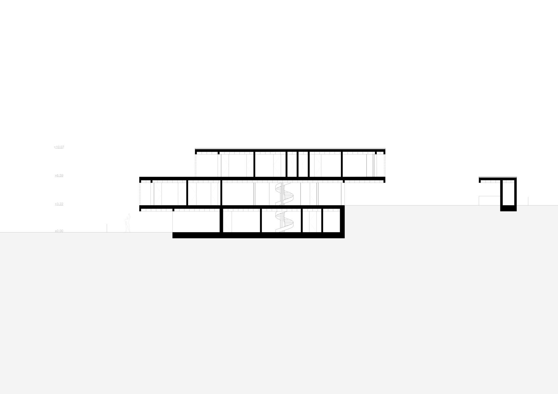 To optimize space without compromising on functionality, the house features daring cantilevers extending almost 6 meters, creating a striking visual impression of the building “hovering” over the ground. This architectural feat required a hybrid construction approach, combining the strength of concrete with the flexibility of steel.